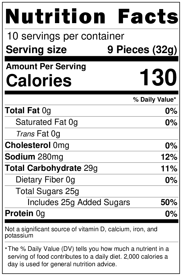 Chili peppers, tamarindo pulp, dehydrated lime, citric acid, iodized salt, sugar, water, hibiscus flower, silicon dioxide, corn syrup, xantham gum, red No. 40, blue No. 1, sodium benzoate (to preserve freshness), sea salt